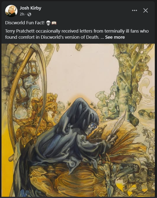 Take the Scam Josh Kirby account that Facebook keeps showing me, its defiantly a scam, he's been dead these 20 years. The account shows art work from the Discworld books, and not just scanned either whoever it is has access to the originals before barcodes, isbn and titles. Its obviously making money - probably off facebooks creators pittance kickback (assume they have one).