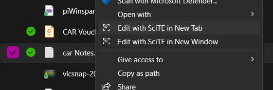 They're used be one with a night right click "edit with SCITE" in a new window / tab button. it was handy because SCITE is a build it yourself from source kind of project