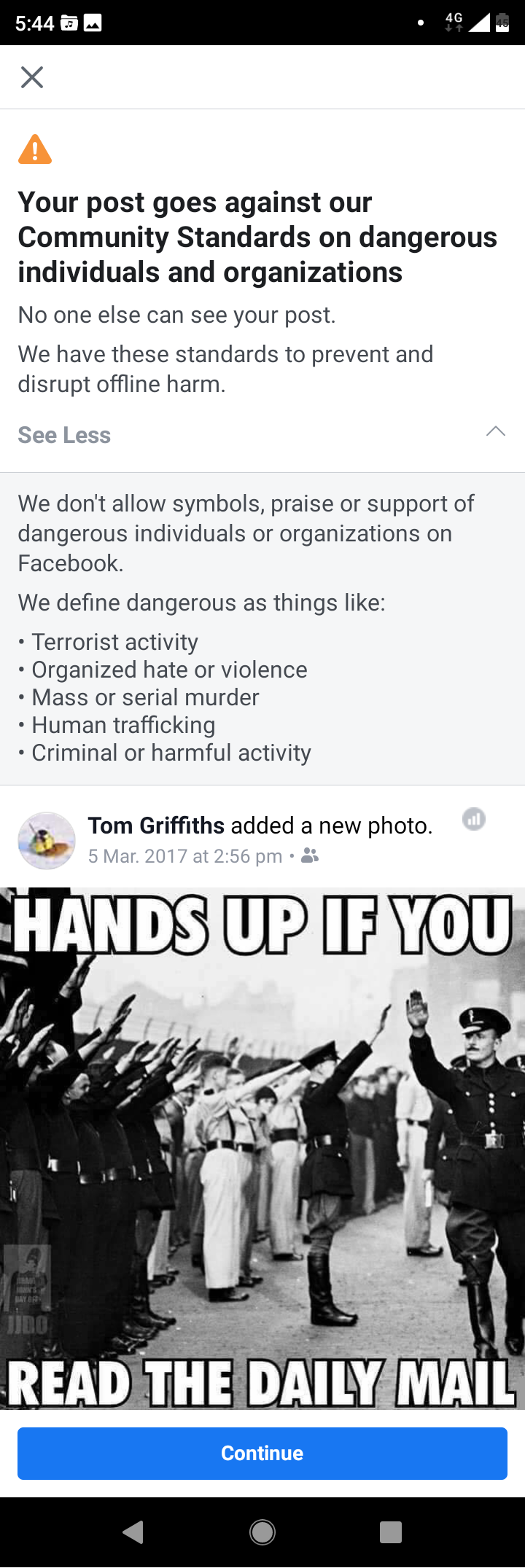 I have been schooled since birth that its morally justifiable to shoot fascists, however its not OK to lampoon them on Facebook.