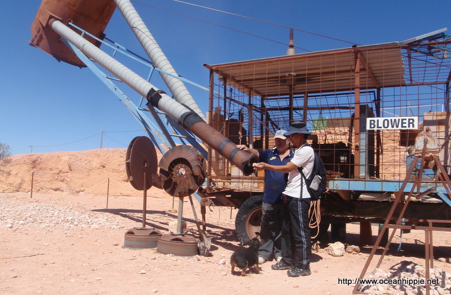 I've actually booked a tour, the half day one got cancelled but the sunset tour is a goer. I could drive out their but after the trip down from Alice about 1500kms of driving I'm looking forward to a proper tour. Matt's kindly found someone who might be interested in me, I'm supposed to be doing a CV. I did actually do some work before going out to see the mining machine demo. Stuck my hand in a 6 cylinder diesel powered vacuum cleaner called a blower. How much fun can one man have? CV's can't compete. The little dog laughed to see such fun and nearly got sucked up too.