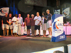 Several awards went to people we knew. The "Spirit of the ARC" went to the couple on Hippopotamus, 2 nice Germans on their honeymoon. Hippopotamus is very hard for a German to say, which is why they chose the name - to irritate harbour masters customs officials etc. That award was well received as 2 days previously they'd, despite being a small boat, hosted a very large party which blocked pontoons all around them.