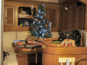 Twas the night before Christmas and all through the boat nothing was stirring, except for a soaking wet Caroline who'd been in a dinghy that ran out of fuel in the middle of a squal...