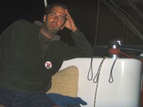 Al and I have been standing most of the watches, its hard work with just 2. I think Al's had the worse part of the deal, so last night we swapped. I got the latter part of the night, which means I can see the southern cross. It only rises late at night, its about the only southern hemisphere constellation I know. We're 9 degrees now. I've not managed to pick out Polaris for a while now. There's no equivalent in the southern sky, you have to follow the the vertical of the southern cross and make a guestimate. There's no doubt however, I'm sailing where the stars a strange. Not that I've all that much time to gwak at them, the traffic round here is like Friday on the M25