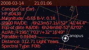 With this program I was also able to identify Alan's UFO. To be fair, the thing was flashing different colours. It looked like a carousel in the sky. In fact it was Canopus, a -0.65 magnitude star some 312 light years away, and therefore no direct threat to Jackal.
