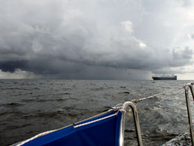 Defiantly in the doldrums, Squally black clouds are gathering. Wind is very light and right on the nose, we've been on both tacks, sailing, motoring or motor sailing at random intervals since we left Panama City yesterday lunch time.