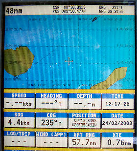I know just how lucky we we're. This has happened to me before. Last time we got near the islands, had the same view for a week as we stayed effectively still, then floated in a big arc around the north of the whole group for another week. This trip took 9 days. That's a fourteen day improvement on last time.