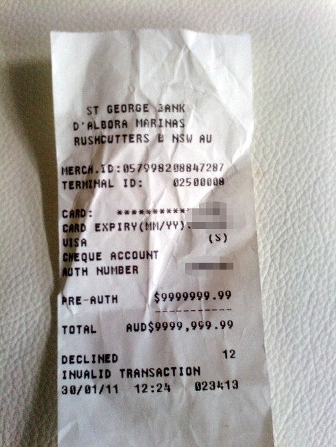 Look carefuly at the recept right, it tried to pre-auth Nine Million Nine Hundred and Ninety Nine Thousand Nine Hundred and Ninety Nine Dollars and Ninety Nine Cents.