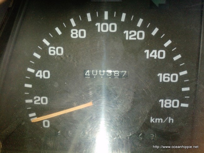 Think 30 degree heat, dust devils blowing through the dusty yard by the garage. Repair took hours, frustrating ones, and cost $15 dollars. I actually broke down 90km up the road, and had to drive back. That's about $30 fuel. Yes my alternator failed. Fortunately this is one of the bits of the Tarago - still unnamed, that I know well. T'was not working for three reasons when I bought it. Belt, loose conection and stuck brushes. If you don't know what brushes are that's your problem. Mine were terribly worn when I unjammed them in Darwin, so I naturally assumed they'd gone. That's the 15 bucks. It wasn't the problem, no it was a broken wire, but they were already barely in contact with the commutator. Obviouslty that ment crawling in the dust under the van, a van with 401000km on the clock, yep it finally rolled over a few days back. My other clock rolled over too, meaning I've driven it nearly 12000km.