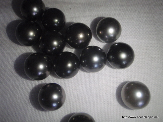 The good pearls are graded, though colour varies, its not of great importance to the value. The ones around here vary from grey to black with shades of lustrous green and purply red.