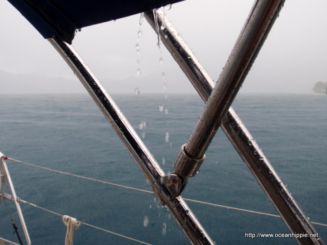 Now we were light winded and then becalmed when trying to make big passages. Now were tied to a buoy with 20, frequently gusting higher wind and lots of rainy squalls. Shame fabulous bay this. Funnels the wind a bit more than we'd like.