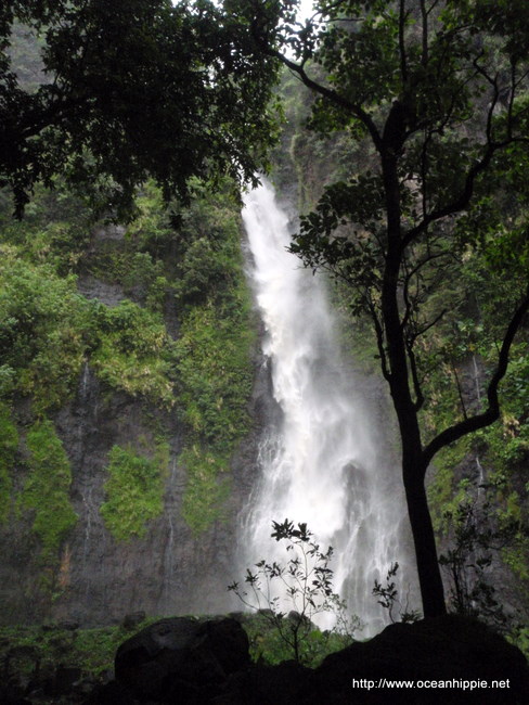 Its doing what it does a lot in the pacific, raining. A lot. Soaking out there. Do you all feel better now. We've been out on a tour, in the rain. The first stop at the water fall was impressive, its wasn't actually raining. But there was so much spray the results were the same, only colder.