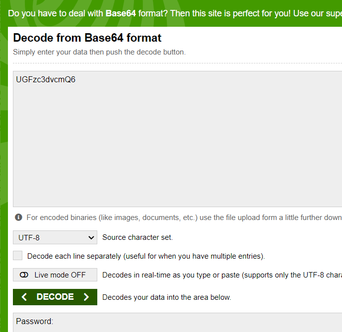 Who is UGFzc3dvcmQ6?
