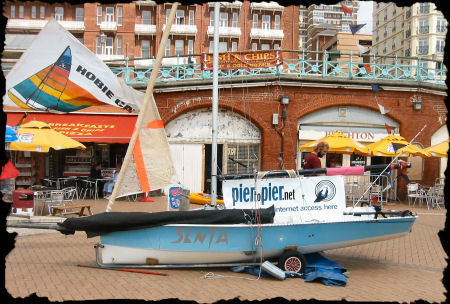 As events go it was a disaster - weather was awful, seafront empty, advertising like this means I imagine nobody knew about it - mind you looking at a road sweeper aint too exiting. However I didn't realise how scruffy looking my boat was. Mind you it was blowing hooly so I used the old wreck of a jib.