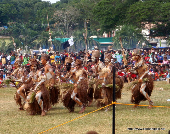 You only as old as the country you feel. This ones a youngster at 30. Its the 30th anniversary of independence at down town Port Villa. Damn is it great. Maori pre-match huka meets X-Faxtor, Pontins, talent show stroke royal variety performance.