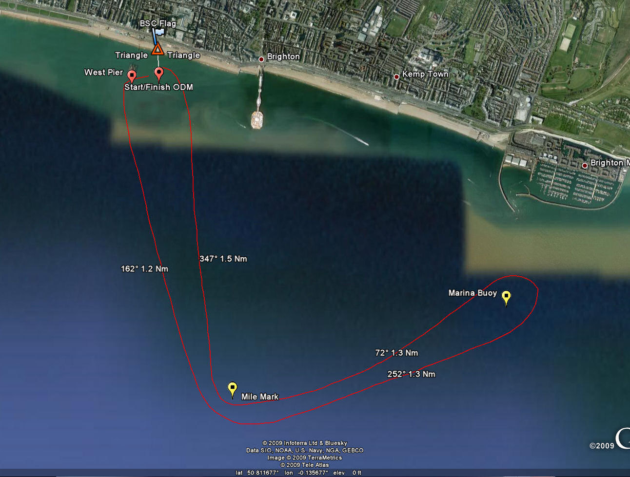 - The "Mile Mark" is a tall thin bouy, black and yellow in colour, marked "BMYC". The bouy is located aproximatly 1 Mile out to sea in line with the Palace Pier.